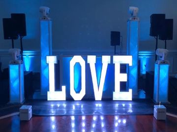 Our 4 foot LED Marquee Letters add a great decorative flair to your special event. These letters can be illuminated in a color of your choosing. They also have color changing and dance program capabilities. We have LOVE, MR & MRS, I DO, XOXO, MARRY ME, and Initials available. If you need something else, just ask.