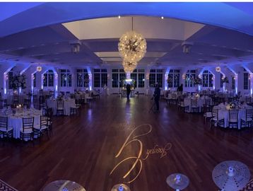 Full room uplighting adds a splash of color to the walls, which creates a beautiful ambiance for your special event. Uplighting can be used to highlight the beautiful architecture in your venue, like pillars, fireplaces or exposed brick or beams. Colors can be selected that compliment your room decor.